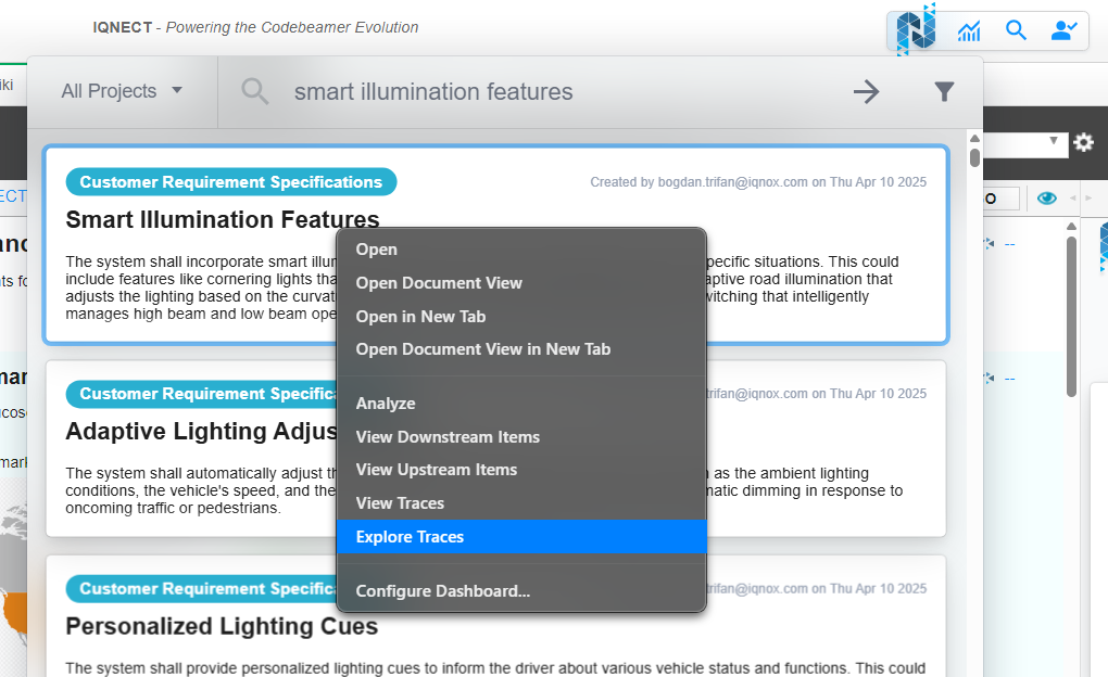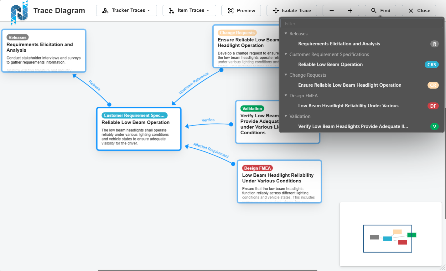 With this feature, IQNECT users can right-click on any resource to open a dynamic trace diagram that starts with that resource. From the diagram, users can expand upstream and downstream traces iteratively, isolate specific trace paths, and use an improved interface with zoom and preview capabilities.