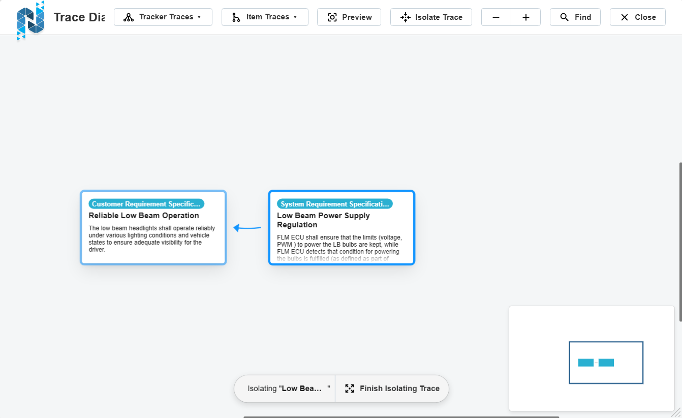 For any resource, users have the ability to Isolate Traces, which temporarily removes all resources and traces not on that resource's upstream or downstream path. Isolate traces can also be quickly enabled by selecting an item and pressing CMD/CTRL + I, and then disabled by pressing CMD/CTRL + ALT + I.