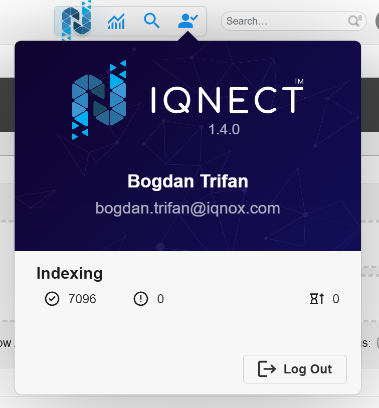 After the user initiates the indexing, the progress will appear in the user account popover.