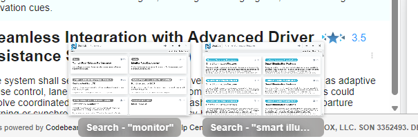 The Advanced Search window can also be minimized. While in this state, a preview will show at the bottom, including the query that was used for the search. The preview is visible when the user hovers the mouse cursor over the bottom of the webpage.